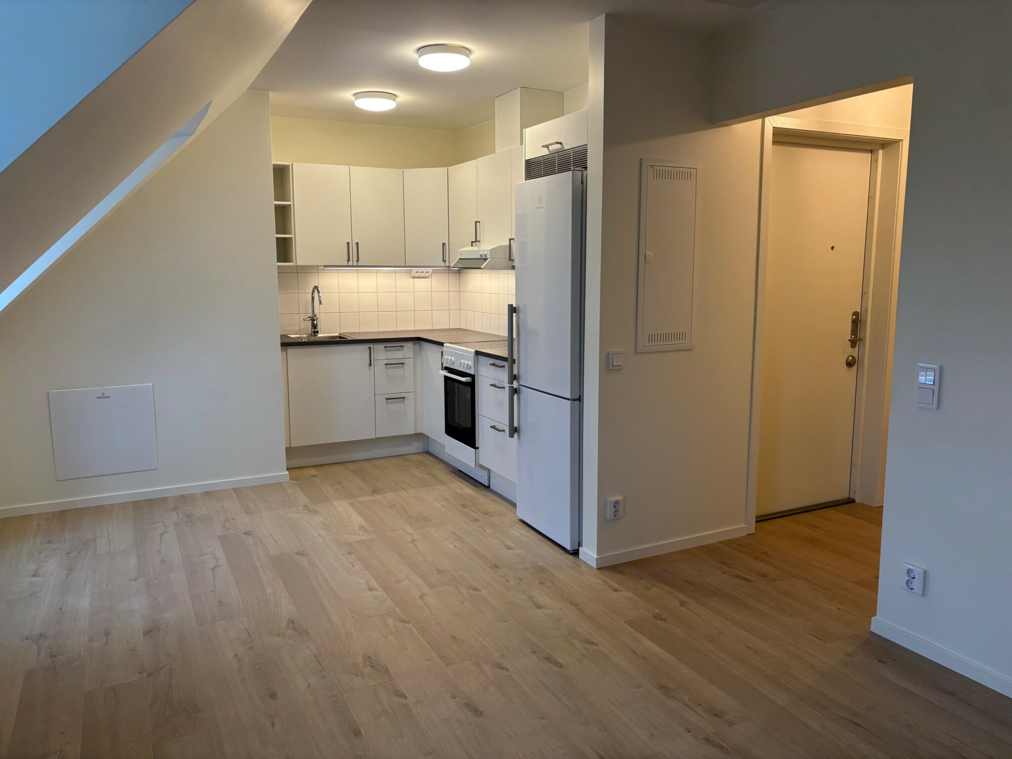 Här erbjuder vi tio tvåor, alla med en yta på cirka 45 kvm, fördelade på ett sovrum, ett vardagsrum och ett kök i öppen planlösning samt badrum med toalett och dusch. Också fyra enrummare färdigställda 2025. Alla med öppen planlösning, 28-32 kvm.