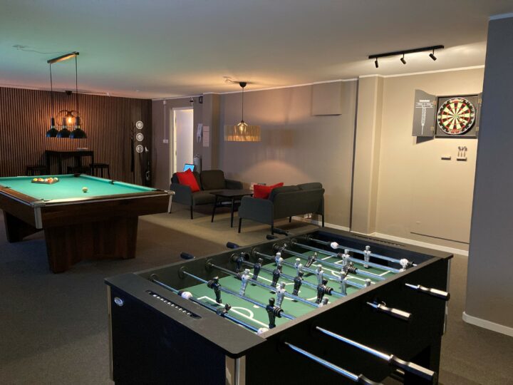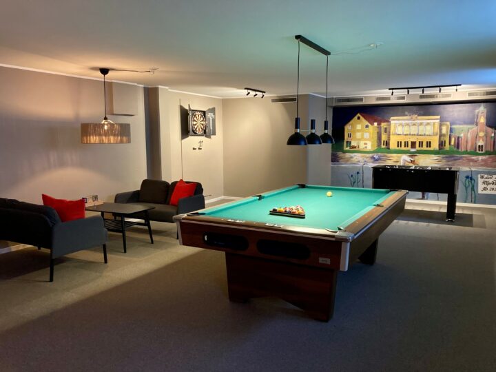 På bottenvåningen på Nedre Slottsgatan finns ett spelrum tillgängligt för våra hyresgäster. I spelrummet finns sittplatser för ca 10 personer samt ett biljardbord, en darttavla, ett foosballspel samt en del sällskapsspel. Det kostar 200 kr/tillfälle att boka spelrummet.