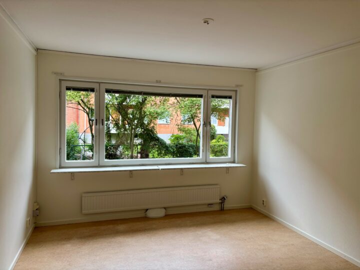Det finns en tvåa längst upp i huset, den är ca 60 kvm och har ett otroligt fönsterparti med fin utsikt över Uppsalas takåsar.