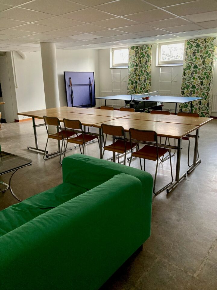 I källaren på Trädgårdsgatan finns en större samlingslokal som rymmer upp emot ett 50-tal gäster med ett större kök med spis, micro och kyl/frys samt två toaletter. I lokalen finns bord och stolar för sittande arrangemang och ett antal soffor. Det kostar inget att boka lokalen.